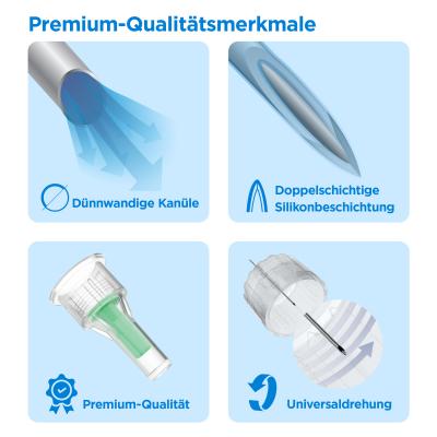 Anwendung : Die FORA PRO-FINE Sicherheits-Insulin-Pennadeln sind ideal für Diabetiker, die eine sichere, bequeme und effektive Möglichkeit suchen, ihre Insulininjektionen durchzuführen. Sie sind auch für medizinisches Fachpersonal geeignet, das täglich mit Injektionen arbeitet. Bestellen Sie noch heute und erleben Sie den Komfort und die Sicherheit der FORA PRO-FINE Pennadeln! |